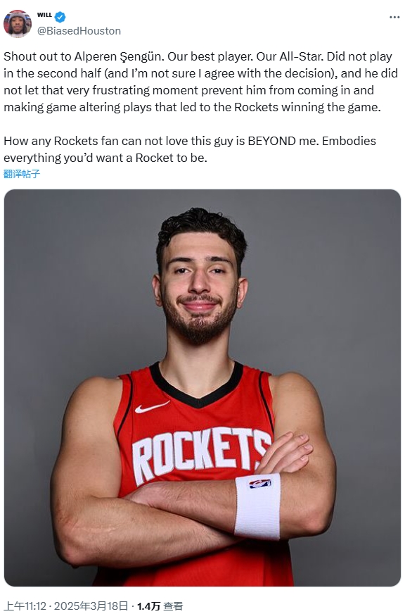 賽后,火箭的一位球迷評論道:“向申京致敬。他是我們最好的球員,我們的全明星。盡管下半場沒有上場(我對此決定并不完全贊同),但他并沒有讓這一令人沮喪的時刻影響自己,他在關(guān)鍵時刻挺身而出,為火箭贏得了比賽。任何火箭球迷如果不愛這個小伙子,那真是難以理解。他完美地展現(xiàn)了火箭球員應(yīng)有的所有品質(zhì)?!?/p>