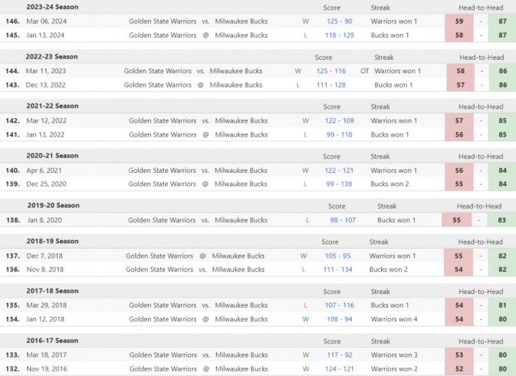 至此,勇士本賽季雙殺了雄鹿。而他們上一次在常規(guī)賽雙殺雄鹿,還要追溯到2016-17賽季。