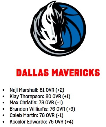 獨行俠球員2K能力值更新:克萊+1至80 馬紹爾+2克里斯蒂-1 一人+6