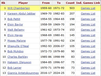 而在NBA歷史上,字母哥的74次能排在NBA第12名,具體排名如下: