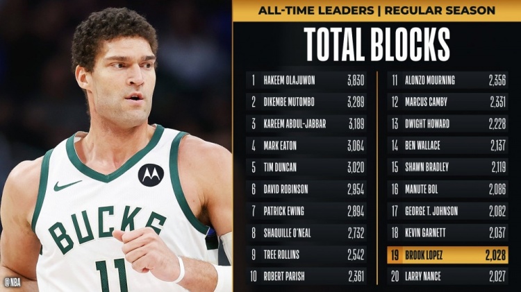這樣一來,大洛佩斯生涯蓋帽數達到2028個,超越拉里-南斯(2027個)獨占歷史第19位,下一步將追逐加內特(2037)。