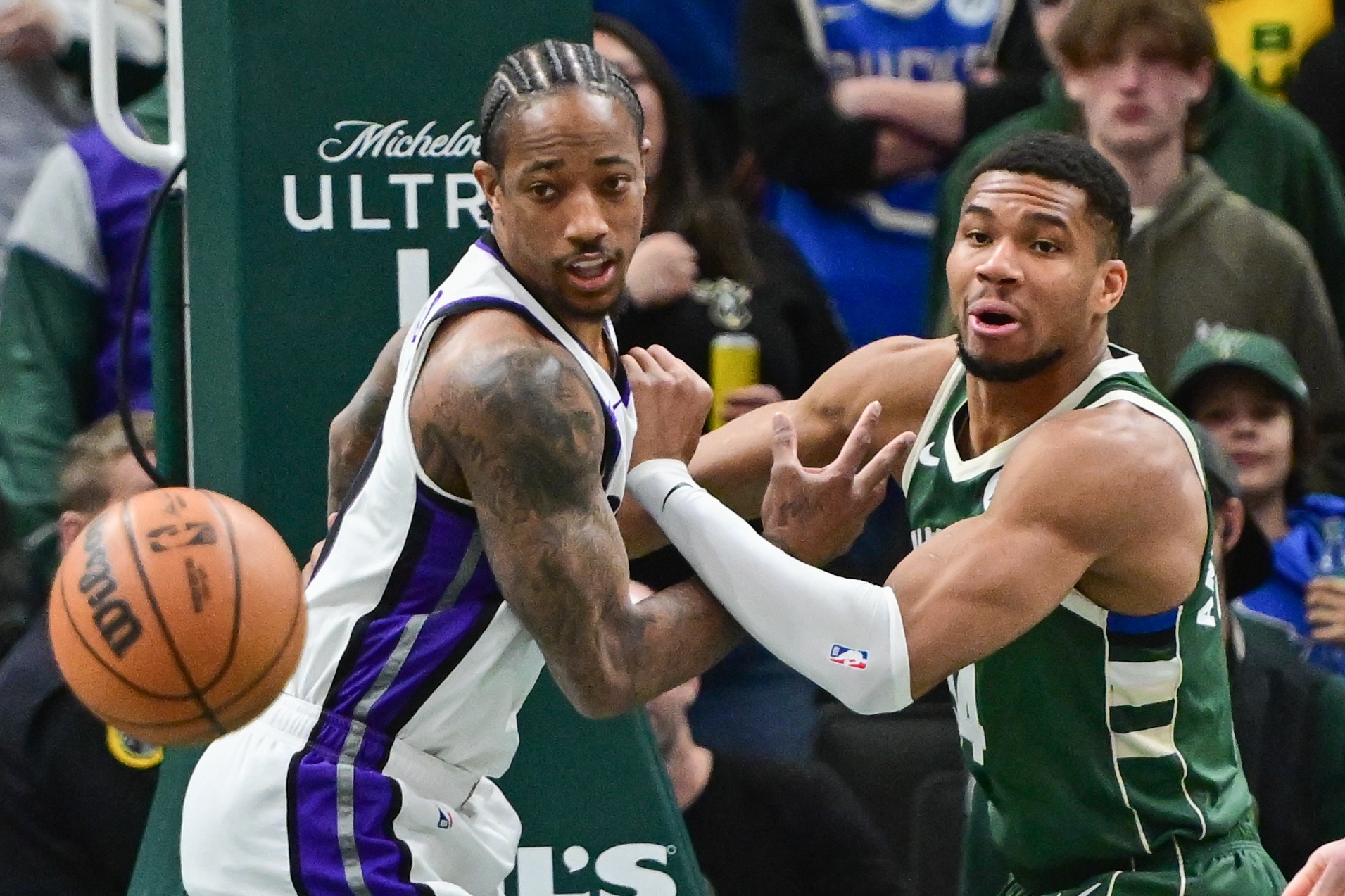 在跑回后場時,阿德托昆博轉(zhuǎn)身向密爾沃基的觀眾展示了他標(biāo)志性的兇狠表情,這種表情通常只在他完成震撼全場的扣籃或蓋帽時出現(xiàn)。
