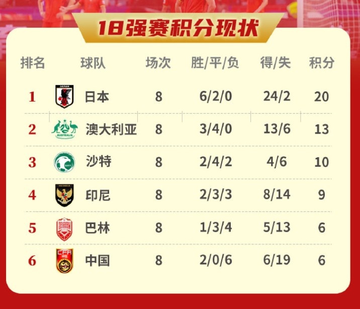 3月26日訊 18強(qiáng)賽第8輪,國(guó)足主場(chǎng)0-2不敵澳大利亞,暫時(shí)排名小組墊底。《足球報(bào)》撰文分析了國(guó)足出線形勢(shì),如果下輪輸給印尼將提前出局。