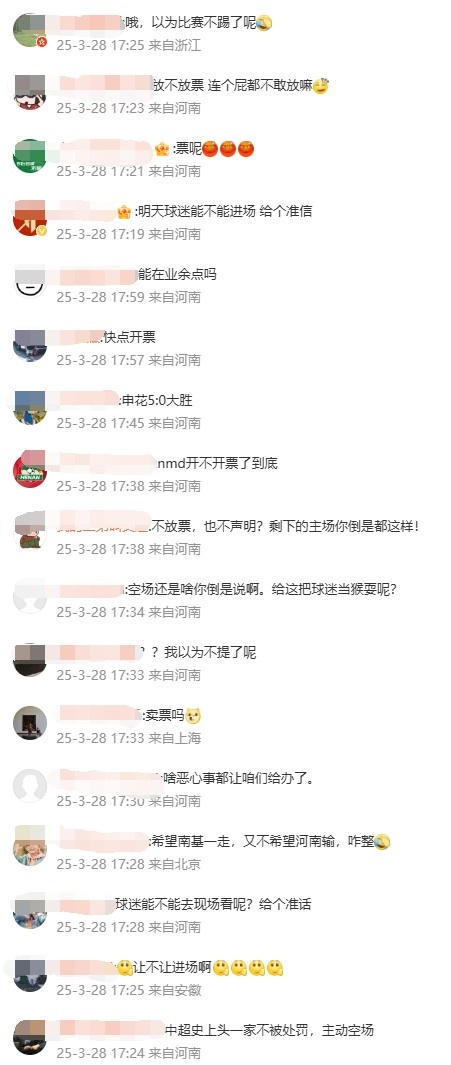 3月28日訊 本周六晚間,河南隊(duì)將在主場迎戰(zhàn)上海申花,不過這場比賽的門票遲遲沒有銷售,球隊(duì)也沒有對(duì)此做出解釋。賽前一天,河南隊(duì)球迷越發(fā)不滿。在球隊(duì)官博評(píng)論區(qū),球迷們發(fā)出了很多的質(zhì)問。