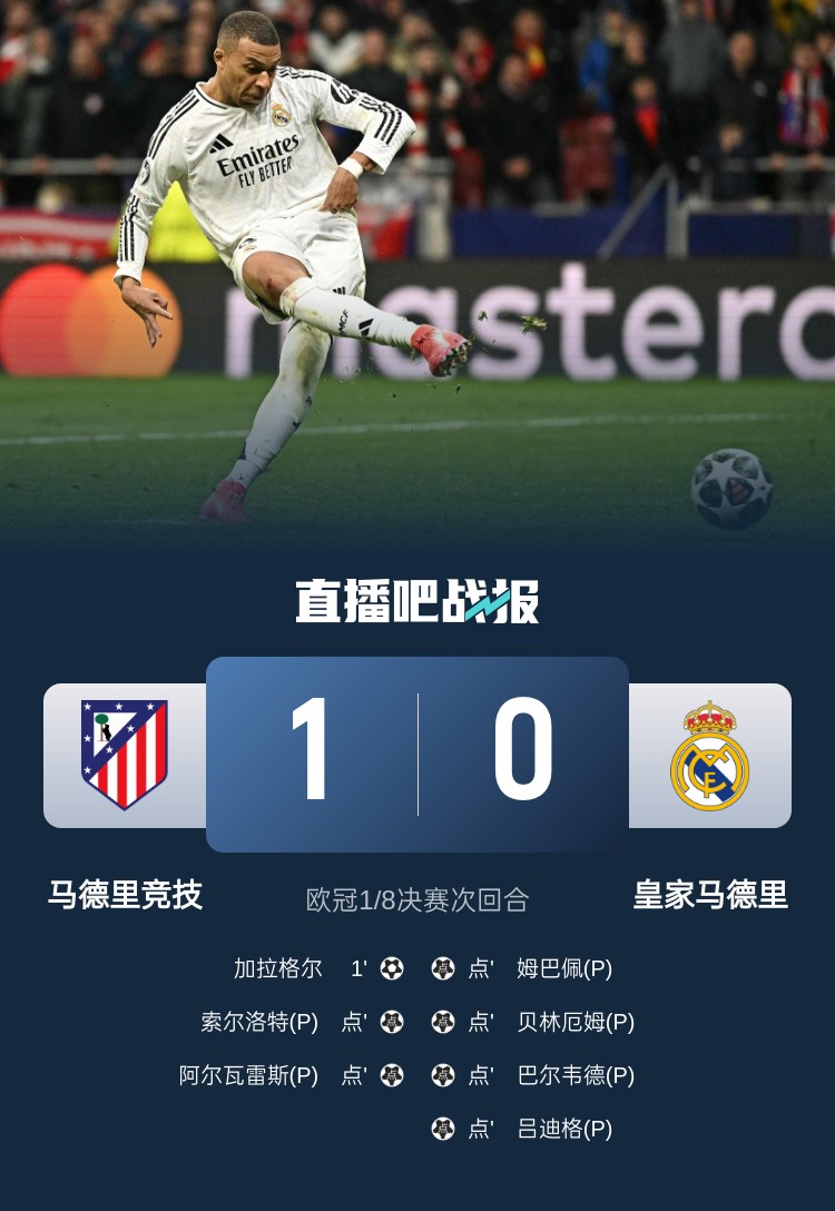 歐冠1/8決賽次回合,皇馬兩回合2-2,點(diǎn)球大戰(zhàn)4-2擊敗馬競(jìng)晉級(jí)歐冠8強(qiáng),將迎戰(zhàn)阿森納。上半場(chǎng),加拉格爾閃擊破門,阿爾瓦雷斯兩次勁射被庫(kù)爾圖瓦撲出;下半場(chǎng),姆巴佩造點(diǎn),維尼修斯主罰打飛;加時(shí)賽,雙方均未制造破門良機(jī);點(diǎn)球大戰(zhàn),阿爾瓦雷斯滑倒二次觸球進(jìn)球無(wú)效,巴斯克斯主罰被撲,略倫特?fù)糁袡M梁。